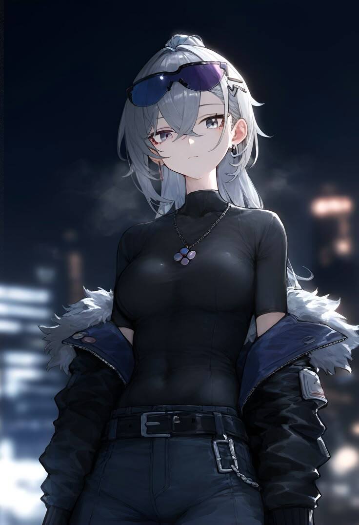Перед ним встала какая-то девушка. Молодая и довольно привлекательная. С серыми волосами, собранными в один низкий хвост. Очёчки на голове, чёрная облегающая футболка, синие джинсы с ремнём и куртка с меховым воротником.