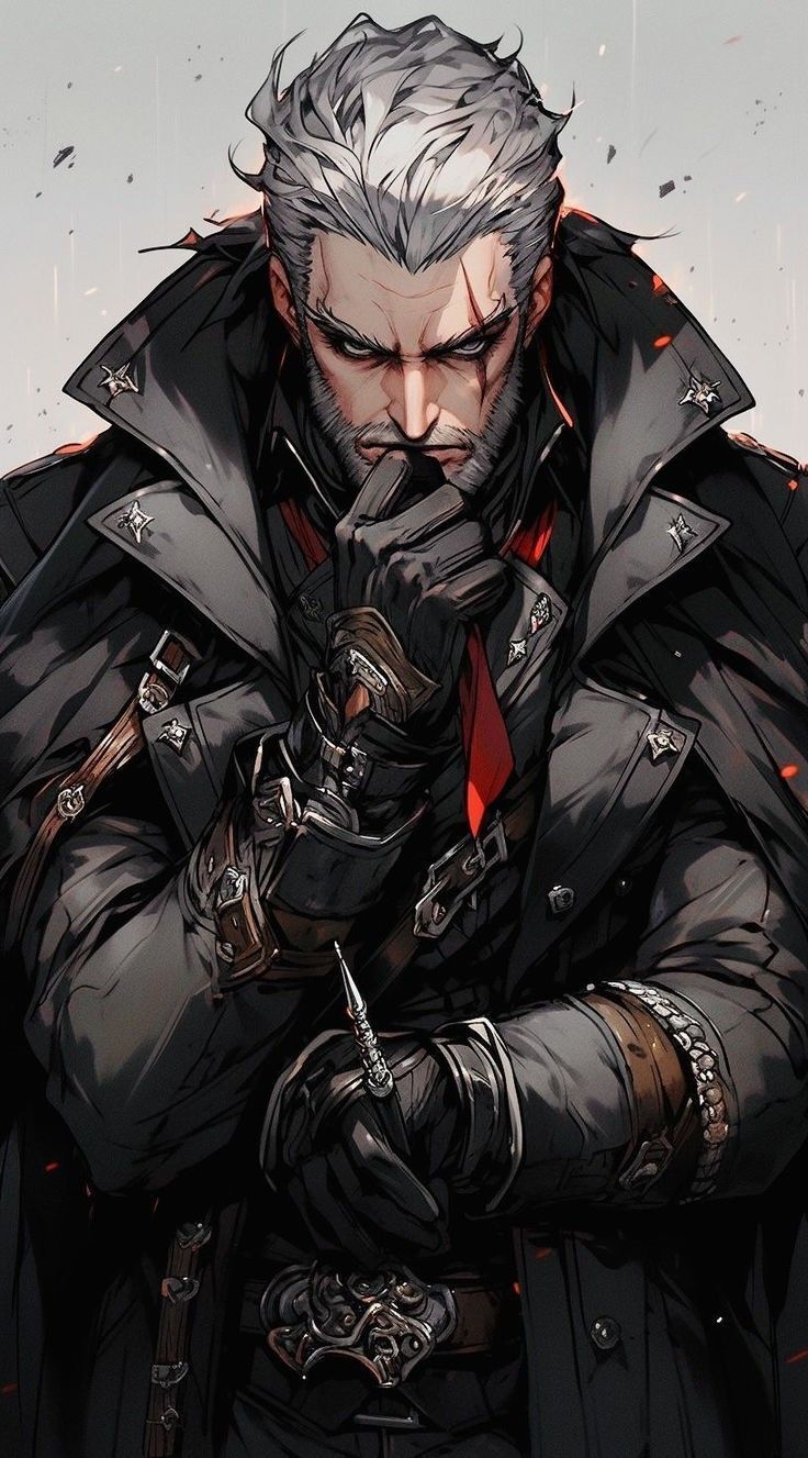 Отведя взгляд от мага, мой взор упал на последнего из присутствующих. На троне восседал седой старик, одетый в чёрный плащ с многочисленными серебряными украшениями, часть из которых скрывали полы плаща. На лице лишенном всяких эмоций красовался большой шрам, который рассекал левую бровь и тянулся до середины щеки. Коротко ухоженная борода и давящий взгляд, полный жестокости создавал впечатление бывалого воина, готового подхватить парные клинки, что покоились у трона и бросится в бой.