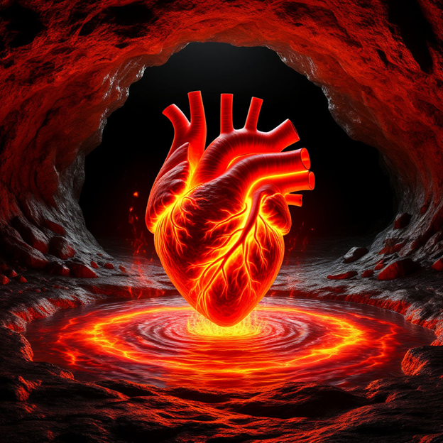 Сам ресурс 2 ранга представляет собой некоторую каменно-лавовую псевдоформу жизни. Выглядит оно как огромное сердце, чем-то отдалённо напоминающее человеческое, но лишь отчасти. Через его камеры, заместо крови, прокачивается лава. При таком подходе и лава насыщается высокоуровненой маной, подпитывая фон озера, так и сердце, мало-помалу укрепляется от каждого сжатия и разжатия. Это сердце находится в симбиотических отношениях со своим окружением — оно помогает тварюшкам комфортно жить, а само, в случае опасности, когда собственные атаки не справляются — может запустить режим страха, когда частота сокращений резко возрастает. Твари чуют опасность для сердца, потому незамедлительно приходят на помощь. Да и получает оно не просто лаву, а лаву, насыщенную жизненной силой, как я понял. Каждая тварь, живущая в озере, по капельке её излучает вовне из-за действия высокоуровневого элементия. Это немного сокращает срок жизни, процентов на 10. Установленная формация и призвана нормализовать ток лавы в окружении — концентрат ресурсов 1 ранга вкупе с ней может имитировать действие Сердца Вулкана несколько часов.