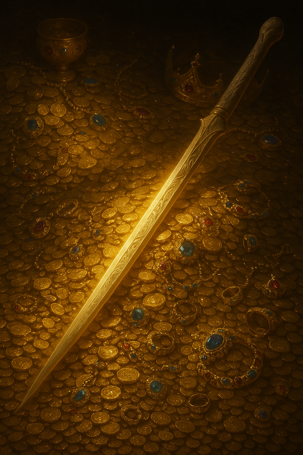 Я подошёл ближе и открыл тяжёлую крышку. Внутри лежали горы золота, роскошные украшения, драгоценные камни… но главное — оружие.