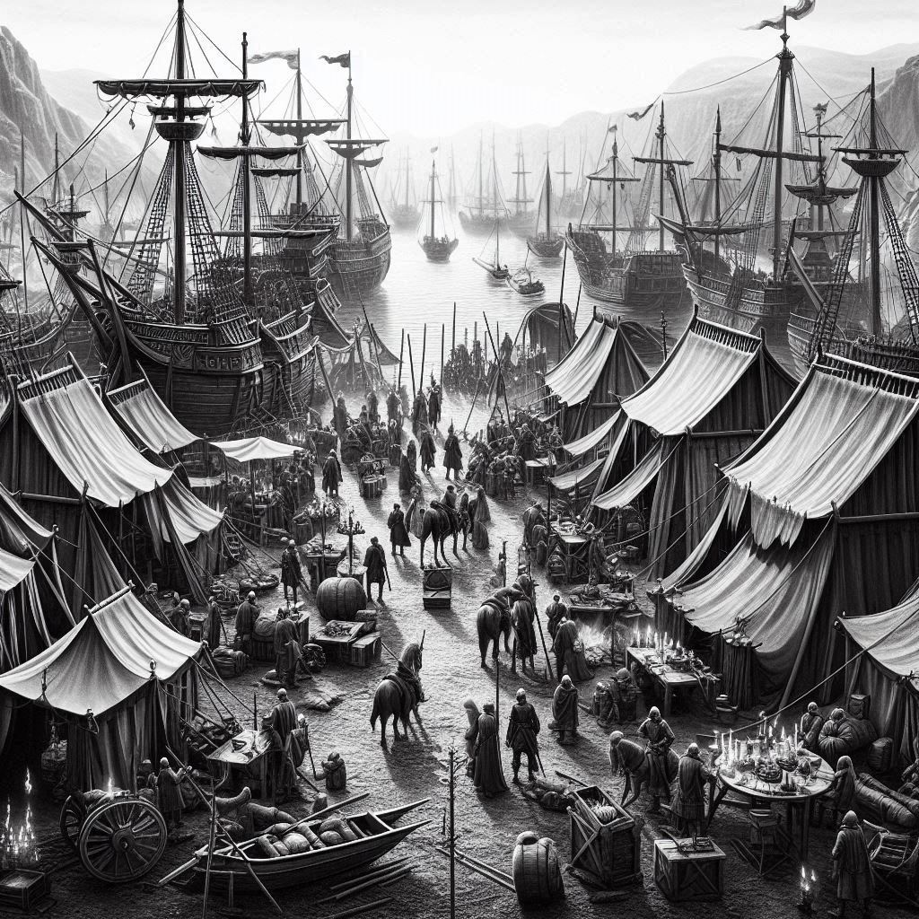 Он вымылся у колодца за казармой, наскоро поел оставшиеся с путешествия припасы, и направился в сторону порта. Там, ближе к морю, находилась вторая часть лагеря — основная масса войск Станниса Баратеона. Именно там были пришвартованы корабли, которые не находились на боевом дежурстве.
