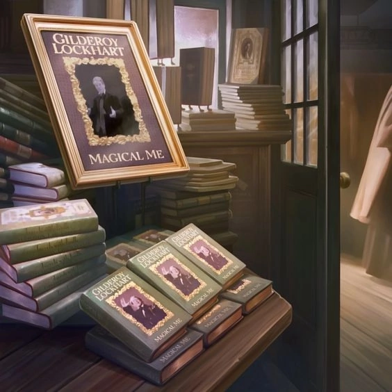 Всё здание было увешано огромными ростовыми портретами Локхарта, а полки огромных витрин были буквально завалены его книгами и живыми портретами в золотых рамках. С каждого портрета и колдофото на нас взирал этакий могучий воин или охотник на чудовищ облачённый в чёрную кожаную броню с развивающимся за спиной чёрным плащом. Вот только всю брутальность портила смазливая мордашка "героя". Гилдерой грозно держал в руках полутороный меч или боевой жезл, принимал пафосные позы, но при этом настолько дебильно лыбился во все тридцать два зуба и подмигивал, что у меня появились сомнения в его психологическом здоровье и начинали терзать мысли о близкородственных половых связях его предков. Может за время странствий ему часто и много прилетало по голове?