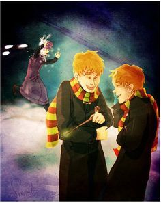 — Братец, давай сразу начнём продавать вредноскопы и мантии невидимки! — Ехидно продолжил второй близнец. — Только для начала поймаем демимаска и обреем его!
