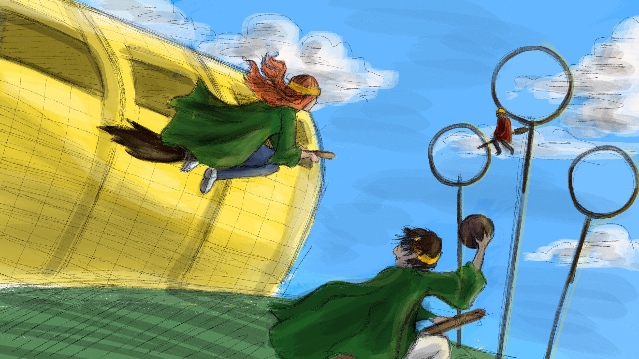 Фанатом квиддича я конечно не стала, но эта безумная игра мне понравилась. Полёты на бешеной скорости, уклонения от чугунных шаров и прочие воздушные пируэты смотрелись просто волшебно. Финальная погоня двух ловцов за еле заметным золотистым крылатым шариком тоже впечатлила. Мне даже самой захотелось снова оседлать метлу и насладиться чувством свободы, что ощущаешь высоко в небе. На каникулах обязательно выпрошу у мамы метлу.