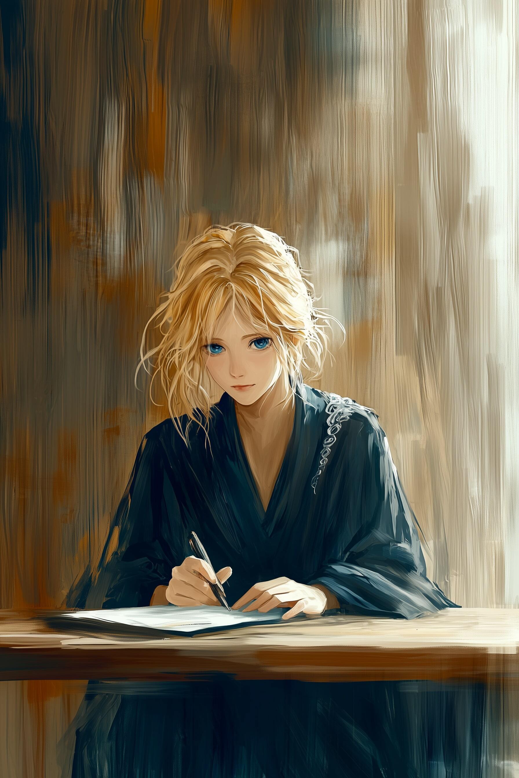 Проведя рукой по волосам, выдавая укоренившуюся привычку, — что было видно по слегка растрёпанной укладке, — он негромко стукнул ручкой о стол, приказав: