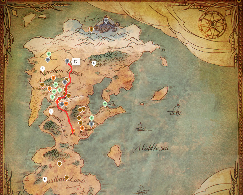 Насколько я понял по картам, мы прошли справа от Империи, обойдя, опять же, справа горы Оффен, не войдя на территорию первого. Всё это по главной местной дороге, что называли Рохр. А оттуда, перейдя на выматывающий ускоренный марш, дошли до места назначения.