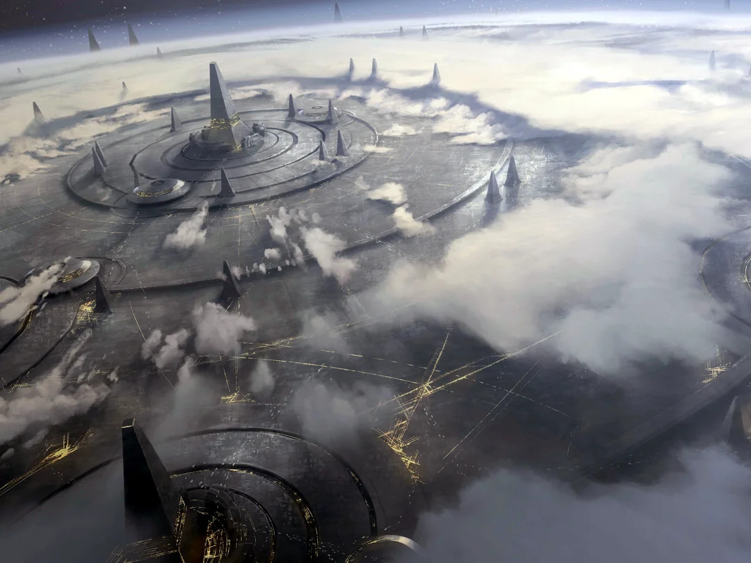 Бесконечный город, что уходил как на многие десятки километров в небо, так и глубоко под землю. Проектируя его, я опирался в первую очередь на уже древние и сгинувшие планеты Тёмной эпохи технологий, которым лишь добавили монументального Имперского стиля.