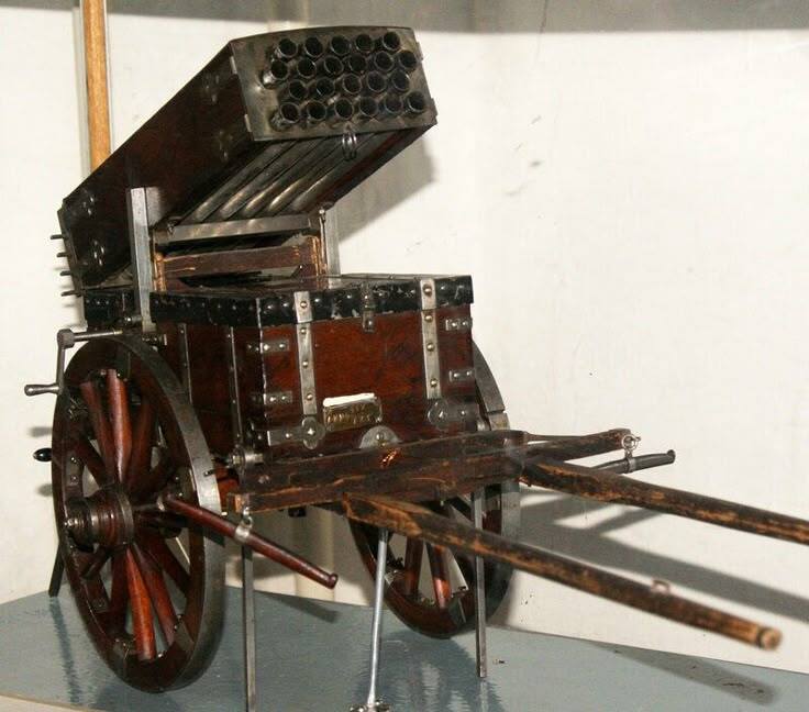 Из секрета стражники катили небольшую повозку, или скорее тачку. Боевая её часть представляла собой коробку из множество отсеков. Но это была не многоствольная пушка. И ещё несколько групп тащили следом деревянные ящики со снарядами.