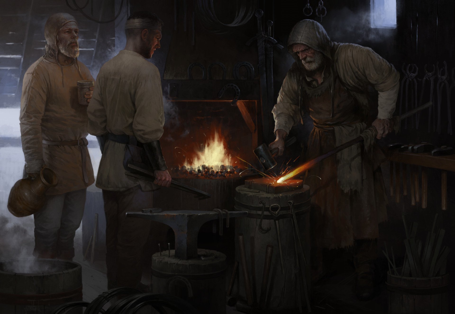 За свою работу помощник, само собой, получает деньги, но далеко не те, которые позволили бы ему за пару лет сколотить состояние. Это уходит в карман самому мастеру. Аха-ха-ха! Нет, не ему. Половину забирает лорд, на чьей земле работает кузнец. Ещё часть уходит на регулярную замену инструментов, которые, напоминаю, крайне дорогие. И часть идёт на сырьё.