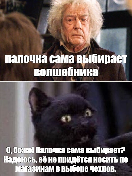 — О, боже, она ещё и выбирает! — воскликнул Салем, заставив правое веко Олливандера задёргаться. — Надеюсь, её не придётся водить по магазинам для покупки стопки чехлов?!