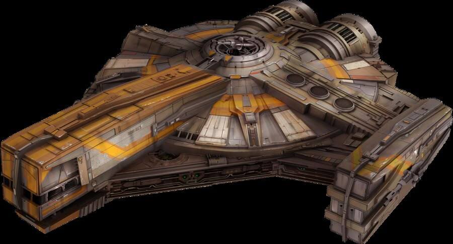 *Я долго искал и думал над дизайном корабля, выбирая максимально похожий на тот, что мог бы быть в мире ЗВ, при этом в эпоху Старой Республики, но решил остановиться на чуть изменённом XS. А ведь ему даже могла достаться первая "Нормандия" — она неплохо вписывается в сеттинг своим "птице-насекомоподобным" дизайном (сравните с "посыльным судном типа "Делайя")