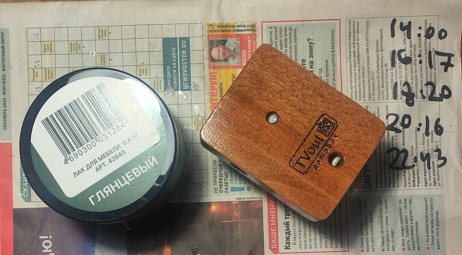 Вышло матово и некрасиво, но потом попробовал просто потереть от руки войлочным кругом, и получился хороший результат: твёрдый, гладкий, в меру блестящий. Этим лаком и решил покрывать корпус, только уже с соблюдением технологии.