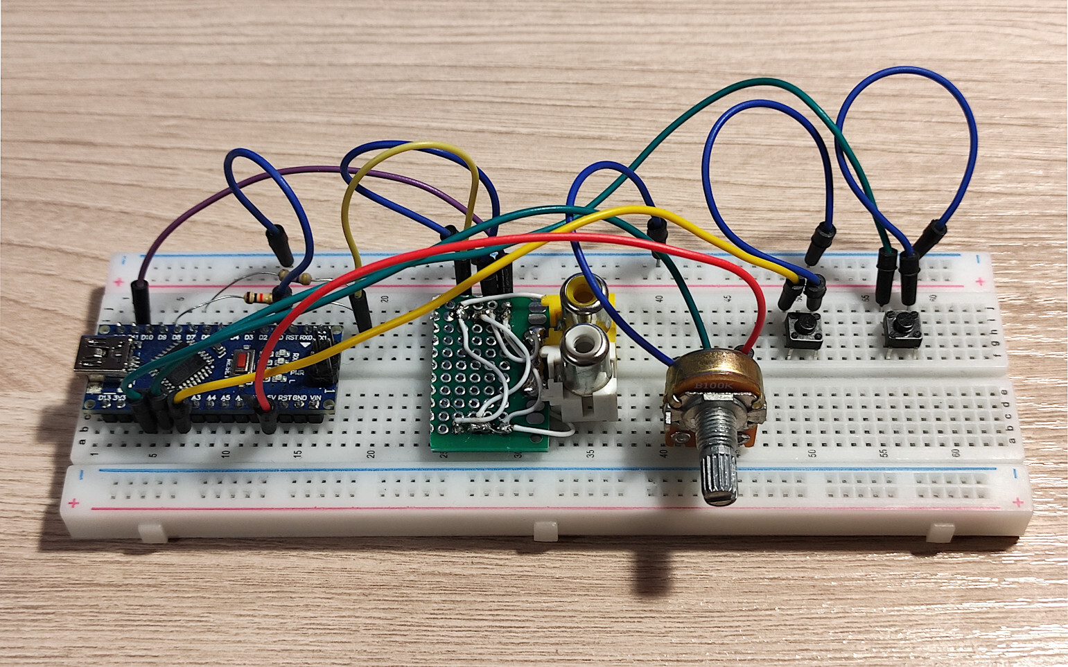 К предыдущей кучке деталей из Озона я добавил ещё одну очень похожую. Там тоже есть аналогичный деревянный пенал, кнопки, и провода. Не стал снимать, чтобы не повторяться. Всё это — детали для одной группы микро-проектов.