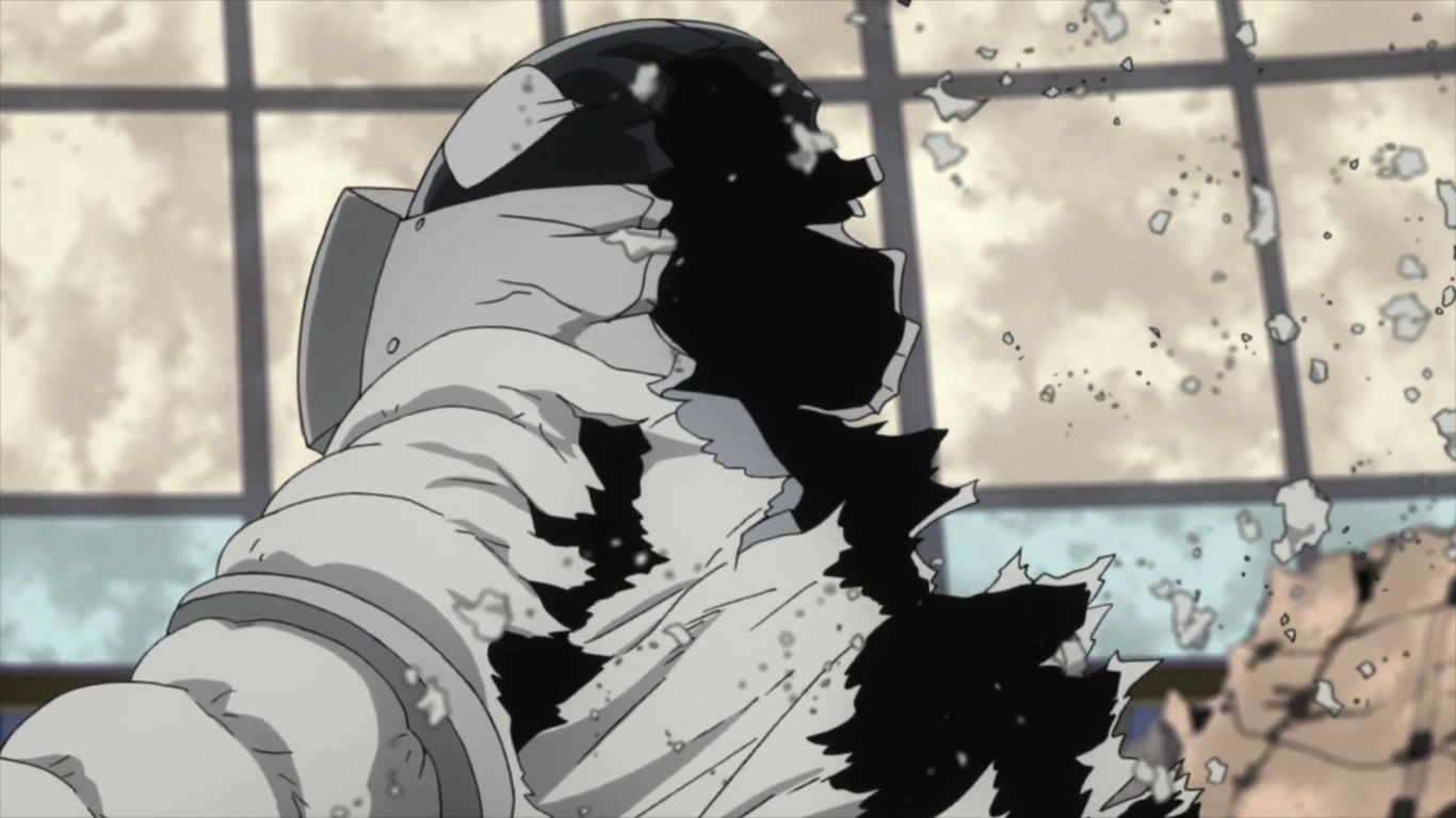 Помогло. Его взгляд приобрёл решительное выражение, а сам он, активировав свою причуду, побежал вперёд. На этом мой взгляд вновь вернулся к героине. Задняя часть костюма полностью испарилась под действием её собственной способности, однако я не вижу каких-либо травм. Надеюсь, что так и есть.
