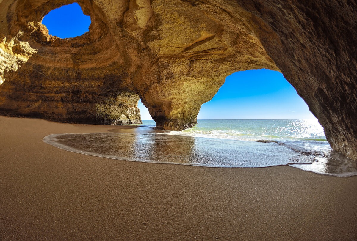 Они оказались в огромной пещере, над их головами был большой, почти идеально круглый пролом, через который внутрь попадал свет, а в бескрайний океан выходило два арочных проема. Волны лениво набегали на берег внутри пещеры и с шорохом уходили обратно, чтобы вновь вернуться, бесконечно повторяя мерное движение.