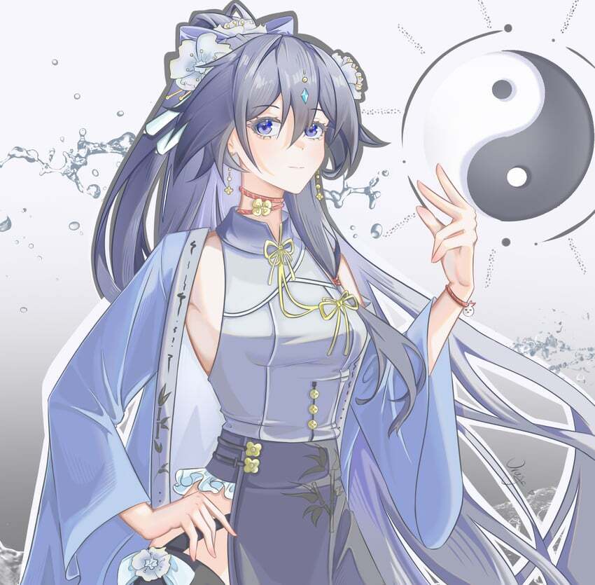 Адепт молча окинула её взглядом, кивнула, и через мгновение из воздуха на Ху Фуа мягко опустился голубой халат или, может быть, мантия. Полупрозрачная.