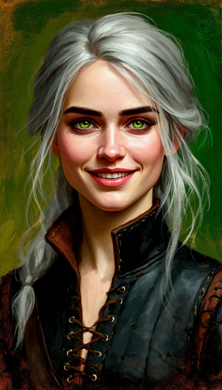 Камни кулонов засветились — сперва бледно, но с каждым мигом, с каждым произнесённым словом всё ярче и ярче, словно пара маленьких фонариков — фиолетовый и зелёный. В какой-то момент свет резко сменился на белый, а уже в следующий миг они поменялись местами, постепенно затухая: тот, что горел зелёным — стал фиолетовым, а фиолетовый наоборот налился зеленью молодой травы. Лишь тонкие жилки остаточных цветов, казалось, стремились поскорее втянуться в серебряные оправы, пока не исчезли полностью. Оторвав взгляд от диковинных метаморфозов камней, я понял, что что-то не так… И ещё пару секунд мне потребовалось, чтобы осознать — там, где стояла Цири — недвижимо замерла Ангулема, а на месте бывшей разбойницы нервно теребила край чёрного охотничьего костюма Цири!