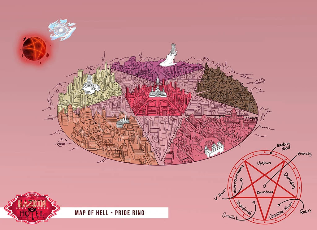 Официальная карта круга Гордыни. Слева и показаны Рай и Земля, запечатанная пентаграммой Люцифера.