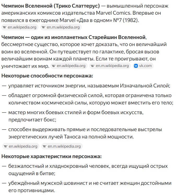 (Трико Слаттерус, он же Чемпион Вселенной, как и Коллекционер с Грандмастером является Старейшиной Вселенной, но у тех тараканы в голове поменьше будут, этот же помешан на битвах)