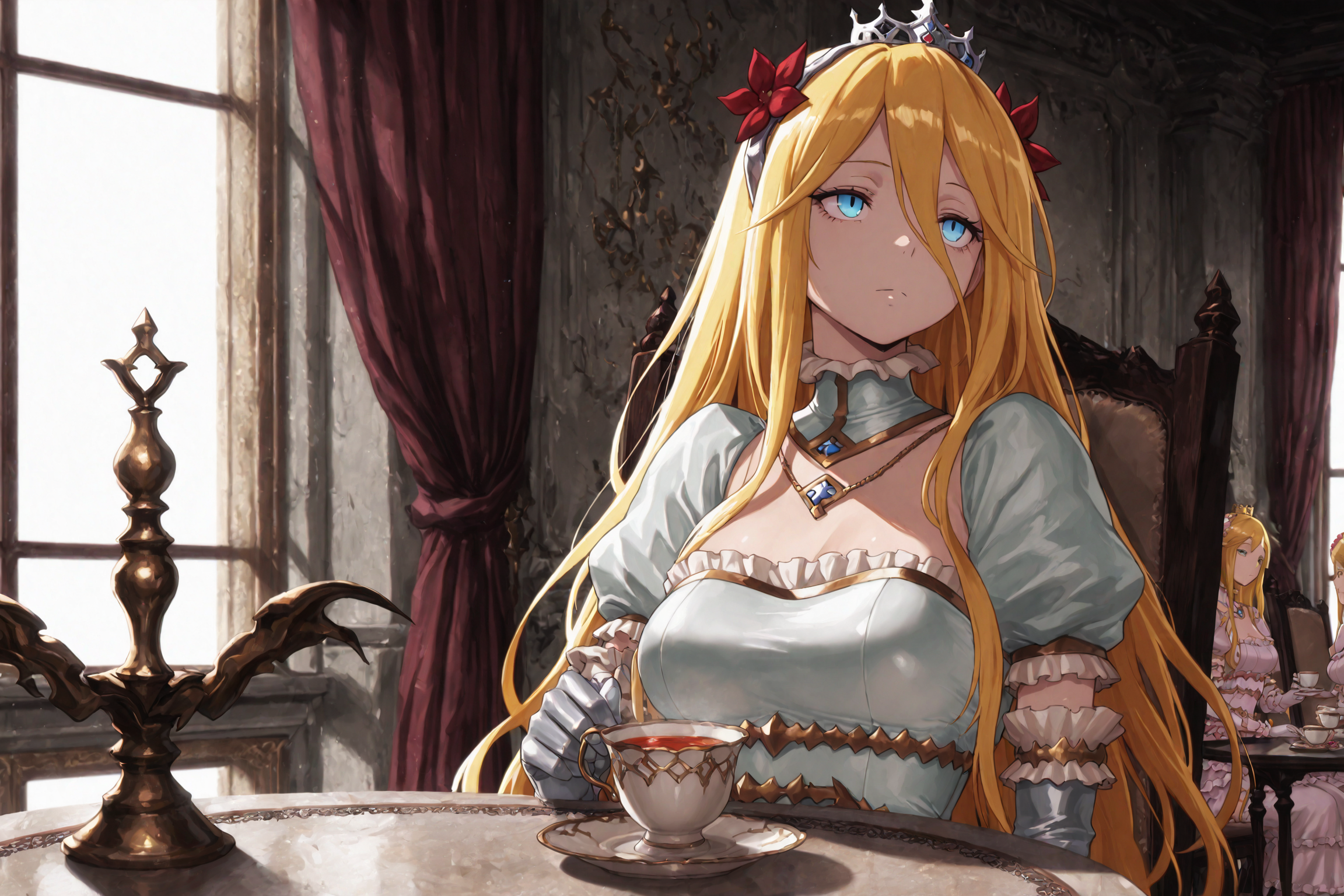 Добрая, наивная, не дура, но и звезд с неба не хватает, несет свет и надежду своим подданным и те платят ей своей любовью, лояльностью и поддержкой.