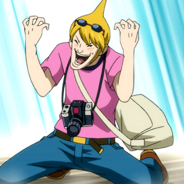 Чрезмерно эмоциональный блондин с идиотской причёской сам решил подойти к нашему столику. И должен сказать… своим неординарным поведением он выделялся даже на фоне таких индивидуалистов как волшебники из Хвоста Феи. При первом же появлении тот дрожал и чуть ли не писался от счастья. Выглядел репортёр прямо как самый ярый фанат при встрече со своим кумиром. Впрочем, стоило только прислушаться к тому бреду что он нёс, как сразу стало понятно, что случайное сравнение с фанатом как нельзя точно описало его личность.