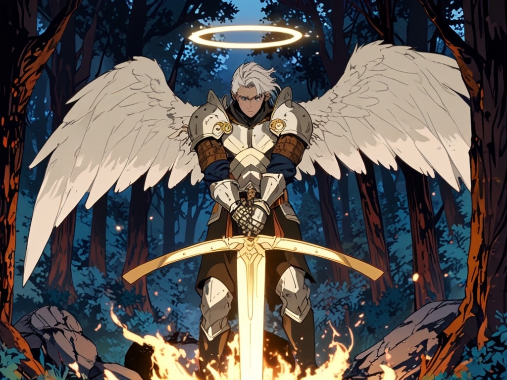 В сознании людей ангелы добрые существа. Но то, что явилось, можно назвать кем угодно, но только не добрым. Двухметровый бугай со здоровенными белоснежными крыльями. Весь закован в доспех из голубой стали. В правой руке он крепко сжимал полуторный меч, который нестерпимо засиял огнём.