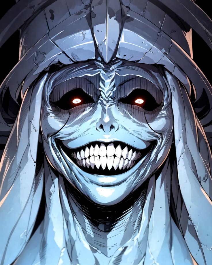 Взгляд статуй пронизывал, вызывая чувства страха. Казалось, что эта улыбка может заморозить кровь в жилах, а ее безумный блеск мог свести с ума любого, кто осмелится встретить взгляд статуи.