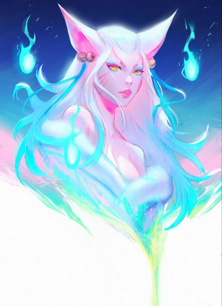 Из-за деревьев к моему лагерю вышла молодая и полностью обнажённая девушка. Водопад чёрных волос едва прикрывал спелую грудь, широкие мягкие бёдра манили взгляд. Весёлые жёлтые глаза дарили обманчивое чувство благосклонности незнакомки. Но, даже в человеческой форме она не могла скрыть свою природу полностью. В волосах девушки можно было заметить светлые лисьи уши, а за её спиной покачивалось несколько хвостов. В один момент казалось, что их три, но в следующий миг один из этих трёх хвостов разделился надвое, и вот их уже четыре. А потом они как-то сливаются в один, но, на самом деле, их девять.