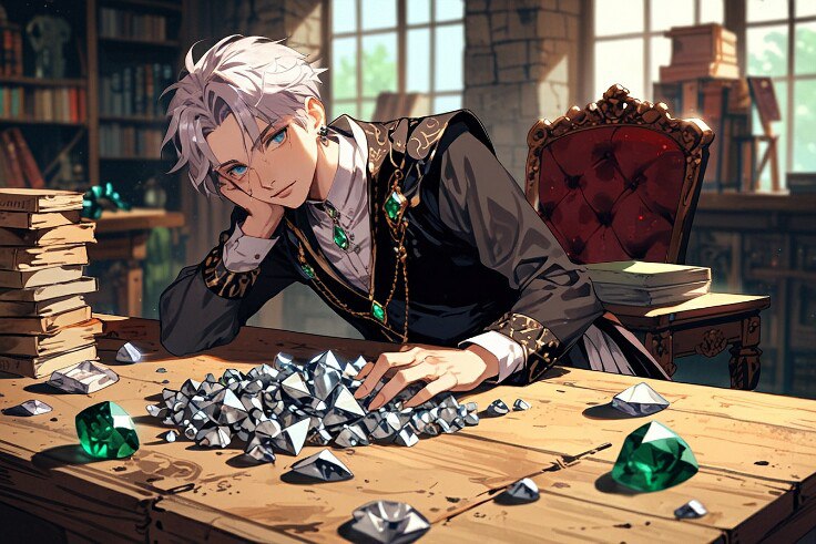 В итоге Леонель решил прибегнуть к зелью трансмутации. С его помощью он создал небольшие, но дорогие товары — драгоценные камни.