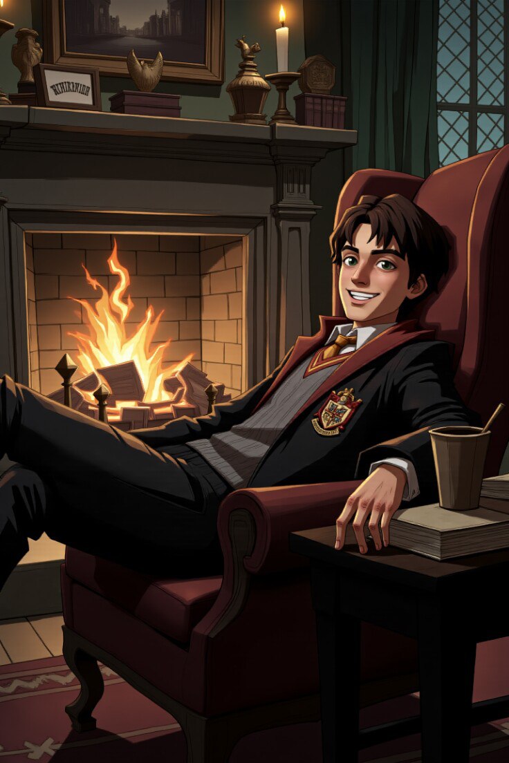 Подвёл Гарри к дивану у камина, и Гарри со стоном на него рухнул.