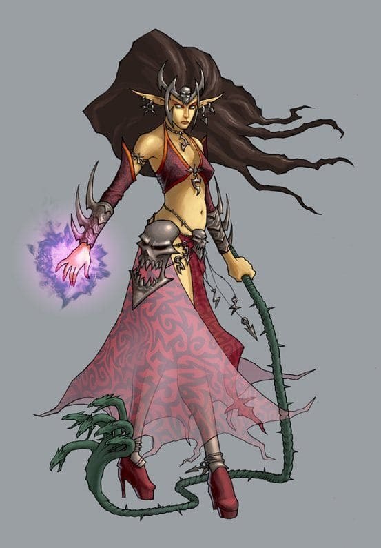 Всё просто — татуировка. Только один клан тёмных эльфов наносил их на лица — Суровые Сердца, о чём не раз упоминалось в источниках Инквизиции. Рабы, пленники, сами члены клана… Каждый из них клеймился похожим знаком, дабы продемонстрировать верность и подчинение главе. Забавно, что это был тот самый клан, основателем которого был Раилаг и который первым продался демонам, стоило у тёмных началтся кризису после проигрыша в Подгорной войны. Согласитесь, вероятность что уроженка из клана демонопоклонников тоже будет демонопоклонницей, достаточно велика.