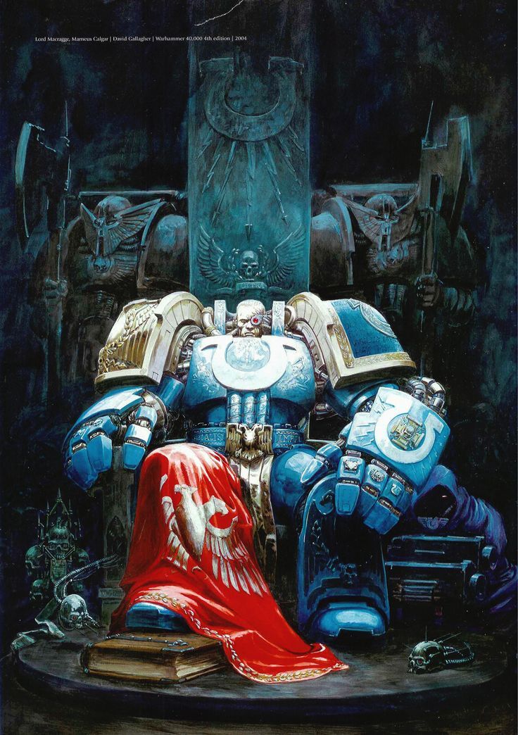 — Если позволите слово, мой лорд. Я испытывал тревожные видения перед атакой на Макрагг. В них мне виделись стаи железных птиц, летевших с далёкого багряного шара, внутри которого вращались шестерни. Затем эти крылатые тени пронеслись сквозь тени языков пламени, что тянулись из пробитых крепостных врат громадной величины. Птицы сжимали в зазубренных когтях пылающий меч, и перья их сияли боевым светом. И летели они все к Ультрамару.