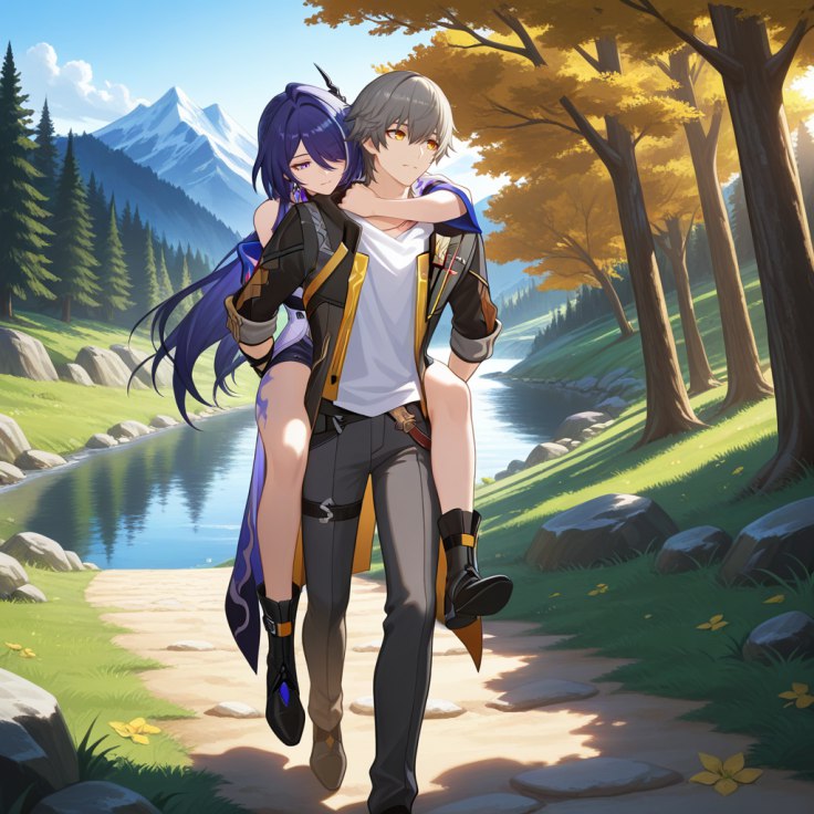 Ахерон сидела на моей спине, её руки нежно, но крепко, обхватили мою шею. Я поддерживал её ноги руками, стараясь ступать ровно, чтобы не потревожить — она была легче перышка, но её присутствие ощущалось каждой клеткой: тепло тела сквозь ткань одежды, ровное дыхание у моего уха, лёгкий аромат чего-то древнего и далёкого, как звёздная пыль, с нотками озона и далёких гроз, а её мягкая грудь упиралась в мою спину, создавая приятное, почти интимное давление с каждым шагом.