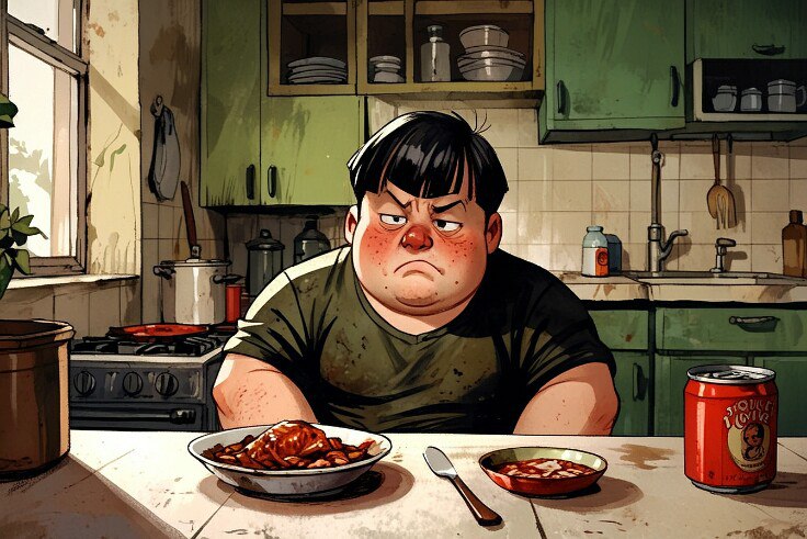 Вернувшись в свою «пещеру», он с чувством выполненного долга принялся за быт. Голод давал о себе знать. Он вскрыл банку тушёнки. Запах, ударивший в нос, был далёк от того аромата, что стоял на их кухне. Это пахло чем-то кислым и металлическим. Он попробовал — и чуть не выплюнул. Консистенция жилистого волокна и жира, вкус старого сала и соли. Это было несъедобно. Он с отвращением отправил банку в мусорное ведро, предварительно замотав в пакет, чтобы не воняло.