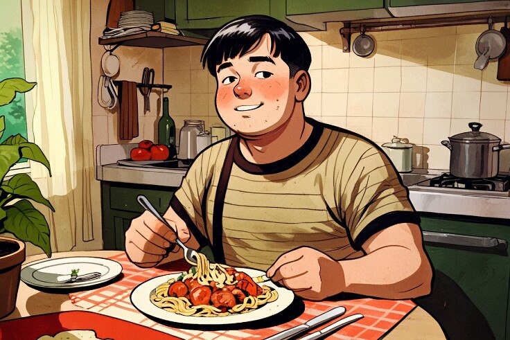 Первый кусок он отправил в рот с некоторой опаской. И… его лицо озарилось довольной улыбкой. Это было не просто съедобно. Это было вкусно. Насыщенный мясной вкус, нежная текстура. Никакой жилистости, никакого привкуса старого сала. Он ел, медленно прожёвывая, смакуя каждый кусок, и чувствовал, как тепло и сытость разливаются по его телу. Это еда казалась ему не простой пищей, а чем-то наподобие победы над сложным врагом.
