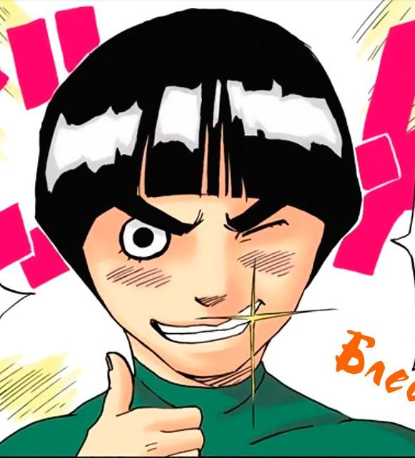 Первым, с ослепительной улыбкой, белоснежные зубы которой сверкали на утреннем солнце, двигался Майто Гай. На нем был обтягивающий зеленый комбинезон, оранжевые гетры и стандартный жилет джонина. Его густые брови и прическа «горшок» придавали ему вид восторженного маньяка.