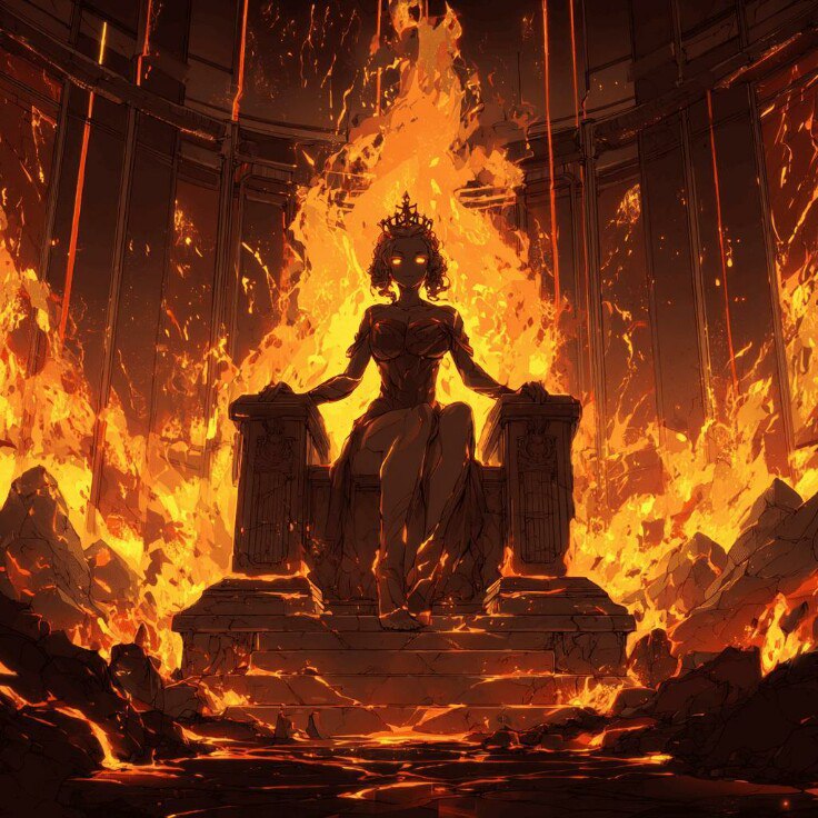 Идти оставалось недолго. Всего через полчаса я оказался на пороге огромной, занимавшей десяток футбольных полей, пещеры. В середине которой бурлило настоящее лавовое озеро, а рядом с ним находился трон, в котором сидела цель моего короткого путешествия.