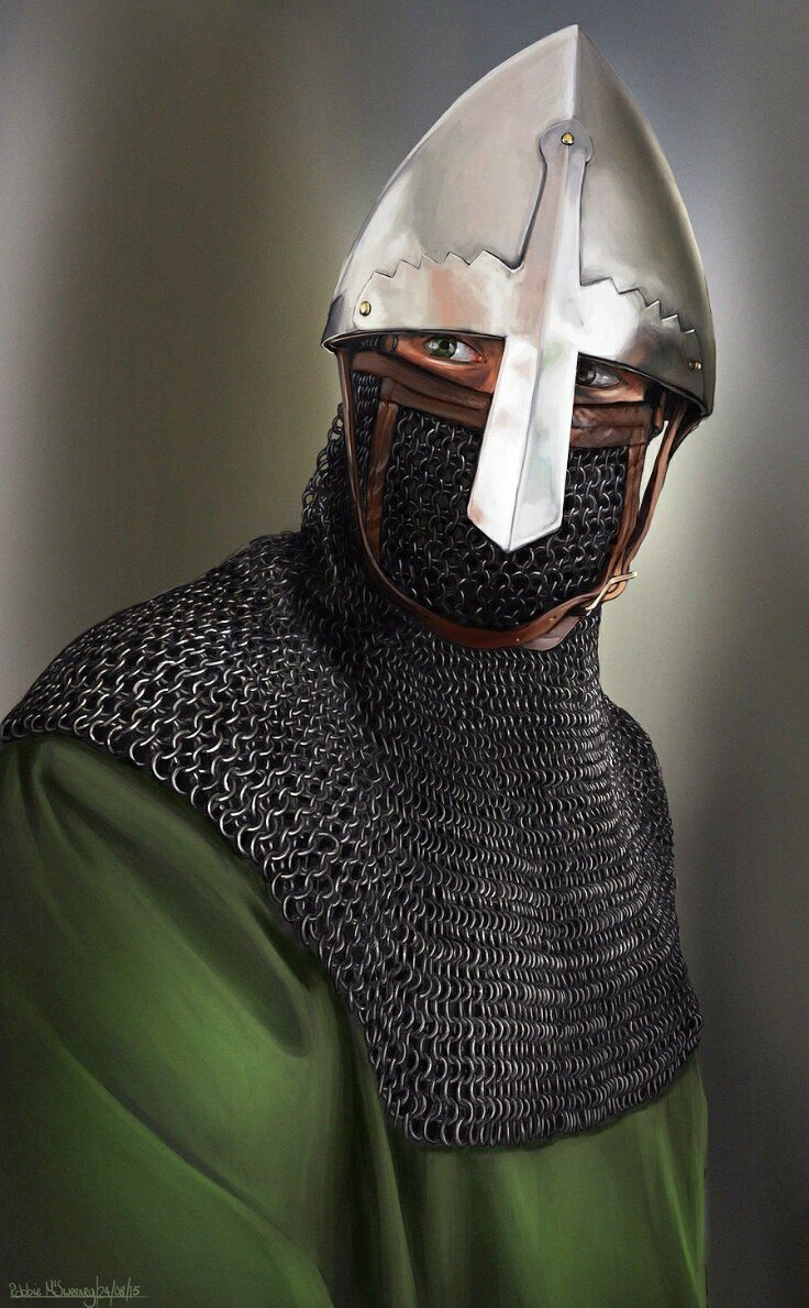 Обернувшись, Драго увидел спокойно стоящего мужчину на голову его ниже в зеленой стёганке, кольчужном капюшоне и шлеме с широким наносником. Лицо мужчины закрывалось кольчужной бармицей отчего были видны лишь зеленные глаза да узкая полоска кожи.