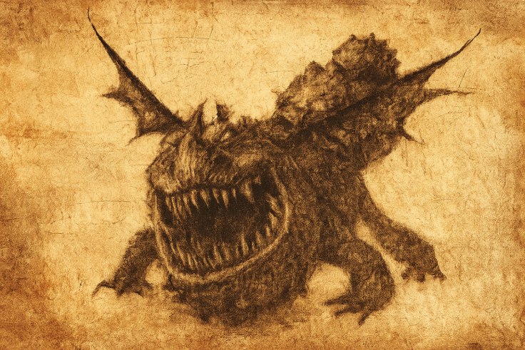 Я перелистнул несколько плотных страниц, пока не наткнулся на знакомый силуэт Громмеля. Рисунок был… ну, скажем так, экспрессивным. Художник явно старался передать уровень ужаса, который внушает эта тварь. Громмель был изображен с разинутой пастью, полной кривых зубов, и выглядел как бородавчатый демон. Мой Шпикачка на этом портрете казался бы моделью с обложки.