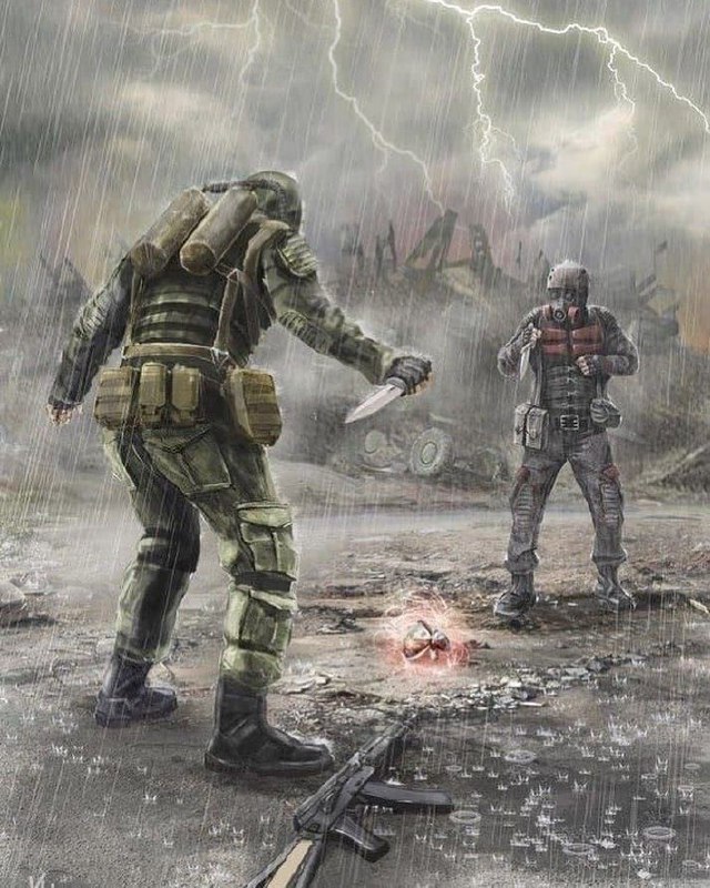 — Ты самый настоящий волчара, сталкер, — ухмыляется Чёрт, слегка качая головой. — Мы с тобой виделись чуть ли не год назад, перекинулись всего парой фраз, а ты меня запомнил? Понимаю, почему на Кордоне за главного ты. Только… ты не находишь, что ситуация не в твою пользу, а, Волк? Привёл с собой только одного…