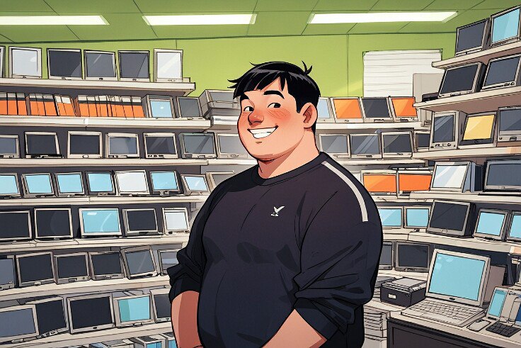 Вскоре был обнаружен маленький магазинчик на рабочей окраине. Там фирменные кроссовки продавали в два-три раза дешевле. Он поехал туда. В итоге купил там такие же кроссовки, только за три с половиной тысячи вместо изначальных десяти. И прикупил ещё одну пару утеплённых зимних кроссовок за четыре тысячи (такие же в спортоварах стоили двенадцать).