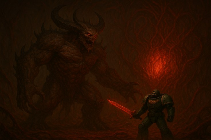 Прыгнув вниз, Палач вскоре приземлился на ноги и, встав в полный рост, интерфейс в его шлеме начал заполняться всё новыми поступающими данными. Из плоти начали строиться, а порой и появляться всё больше разных тварей. Какие-то были огромны, какие-то, напротив, размером с большую собаку. А ещё многие участки поросли непроходимыми шипами и иными наростами.