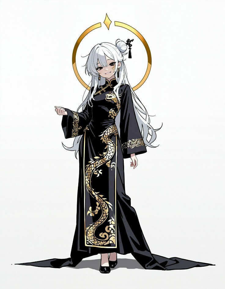 Чёрные, как ночь без луны, глаза с удивительно яркими, буквально горящими золотыми зрачками, создававшими сильный, гипнотический контраст. Чёрное ципао с замысловатыми золотистыми узорами дракона или чего-то близкого, он никогда не мог разобрать, струящимися по шелку. Да. Этот образ не просто задержался у него в голове, он был высечен в самом разуме.