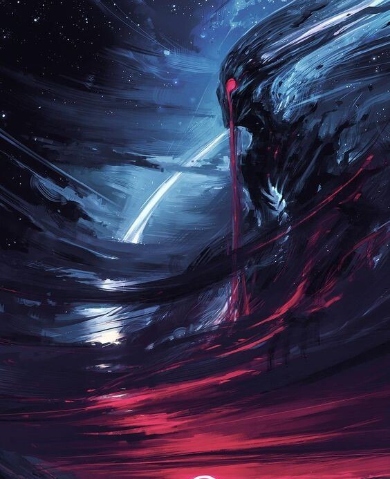 Рядом с их полем брани проявлялось нечто исполинское чёрного, текучего цвета. Словно бы восстала волна воды из самой бездны, но при том оно ею не являлось. Нечто приобрело некоторую гуманоидную форму, показалась цельная голова, из глазницы коей пошло нечто алое.
