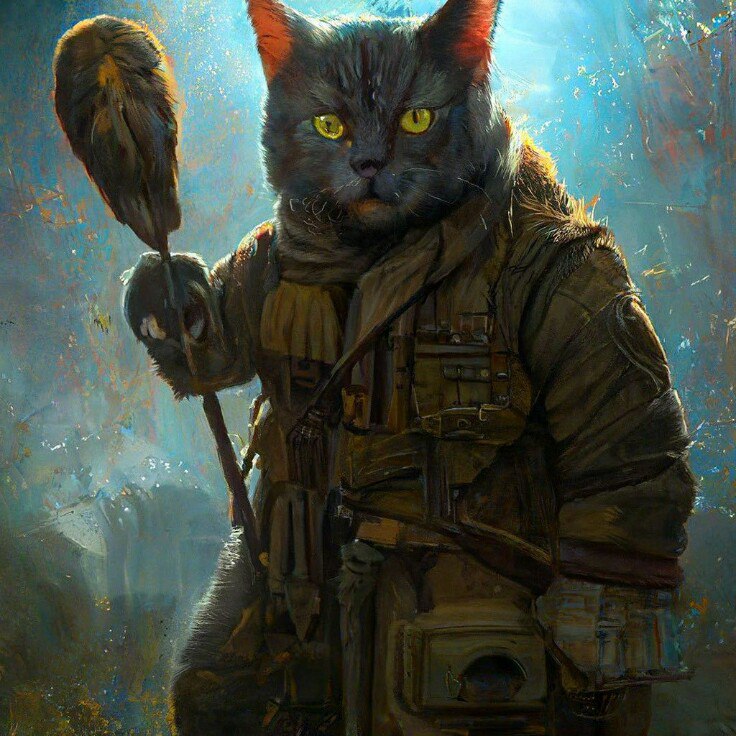 В левой откровенно офигевший Чешир, с широко раскрытой пастью, тяжелым дыханием и выпученными глазами. Тот обессиленно смотрит то на меня, то на своего внезапного врага. В правой же — его собрат, серый с чёрными полосками одноглазый кот, размерами заметно меньше Чешира. Местами облезлый и очень потрёпанный жизнью, всего лишь с половиной хвоста. Рот так же открыт, но взгляд куда собраннее, а когтистые лапы то и дело пытаются достать моего котофея. Резко встряхиваю его.