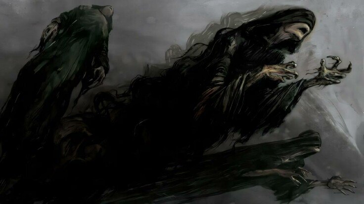 Они не были похожи на призраков или инферналов. Это была материальная, осязаемая гниль. Высокие, метра три, фигуры, закутанные в темные саваны, которые висели тяжелыми, мокрыми складками, словно пропитались могильной сыростью. Я знал теорию. Я читал, что под капюшонами нет глаз — им не нужно зрение. Они ориентируются на эмоциональный фон. Но видеть это вживую… Из рукавов высовывались руки — если это можно было так назвать. Серая, лоснящаяся кожа, покрытая слизью и струпьями, напоминала тело утопленника, пролежавшего в воде месяц. Длинные, узловатые пальцы подрагивали. Вокруг них умирал свет. Буквально.