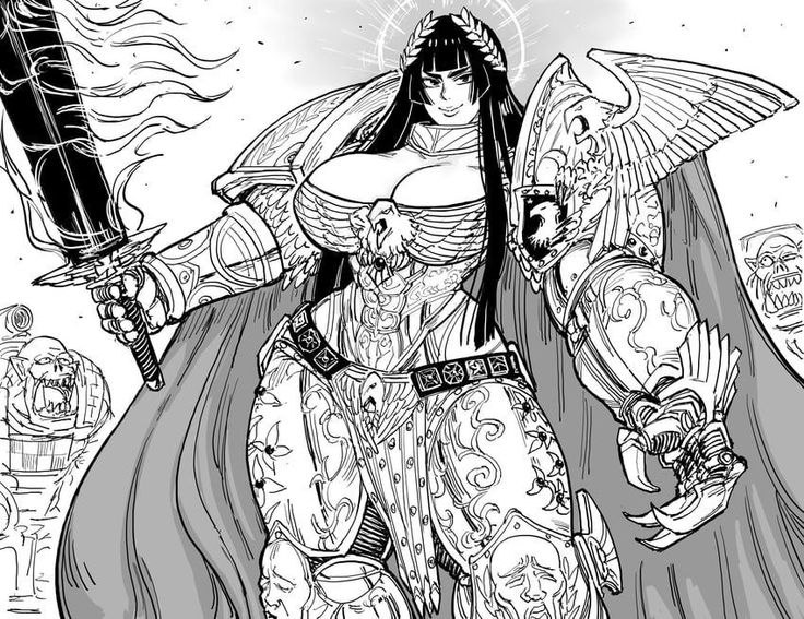 Вместо благородных мужских черт истинного правителя и воина, было женское, обрамлённое длинными тёмными волосами, лицо. Прекрасное, но… Взгляды мужчин, особенно не принадлежащих к рядам Астартес, невольно скользнули чуть ниже.