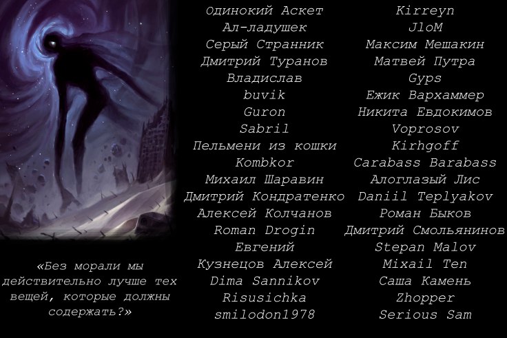 Слова благодарности в конце второго тома, как обычно выписал всех активных подписчиков бусти. Без вас бы этого фанфика не было, но вы это и так знаете. Больше вам спасибо, дублировать одни и те же слова не буду, просто скажу…