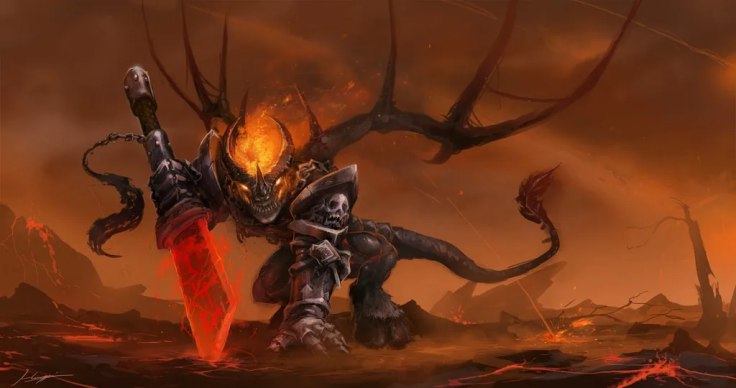 Стоило мне ступить в тоннель, ведущий на пятый ярус, как передо мной из огня соткалась фигура, через мгновение превратившаяся в высокого черноволосого человека, облаченного в красные демонические доспехи.