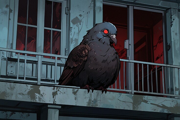 Чёрные нити внезапно окутали тело голубя. Раздался сухой щелчок, словно лопнула сухая ветка — с этим хрустом на место встали сломанные позвонки. Мутные глаза птицы вспыхнули тусклым багровым светом. Она дёрнулась, неестественно выгнула шею и поднялась на ноги. Голубь повернул голову и уставился на Кайна горящими глазницами.